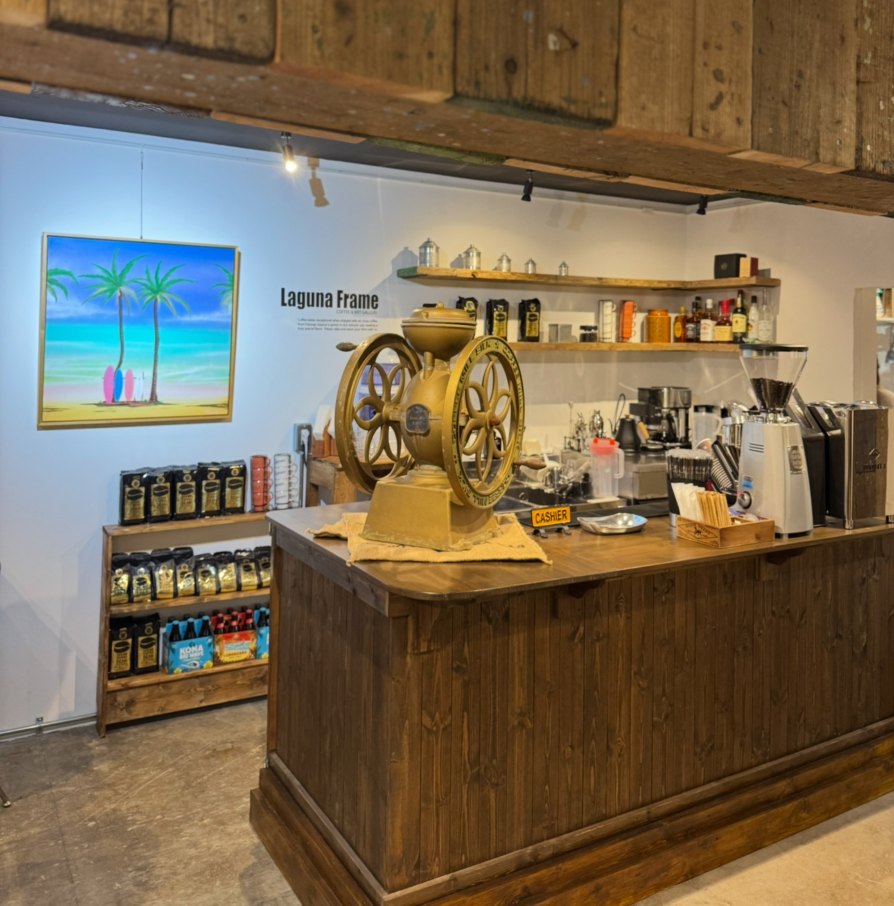 Laguna Frame は、アートギャラリーと本格的なハワイアンコーヒーが飲めるカフェが融合した新しいスタイルのくつろげる空間です。ゆっくりとできる空間をご提供し、自分の時間を作ることのできる環境をご提供しております。
